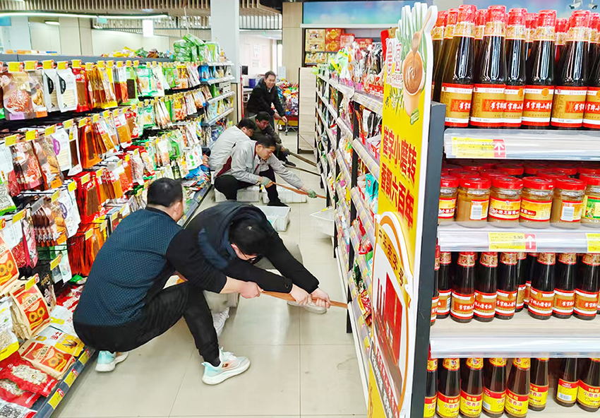 3月12日,經(jīng)營管理板塊同事們齊心協(xié)力幫助民生店調(diào)整貨架,為顧客提供更舒適便捷的購物環(huán)境。