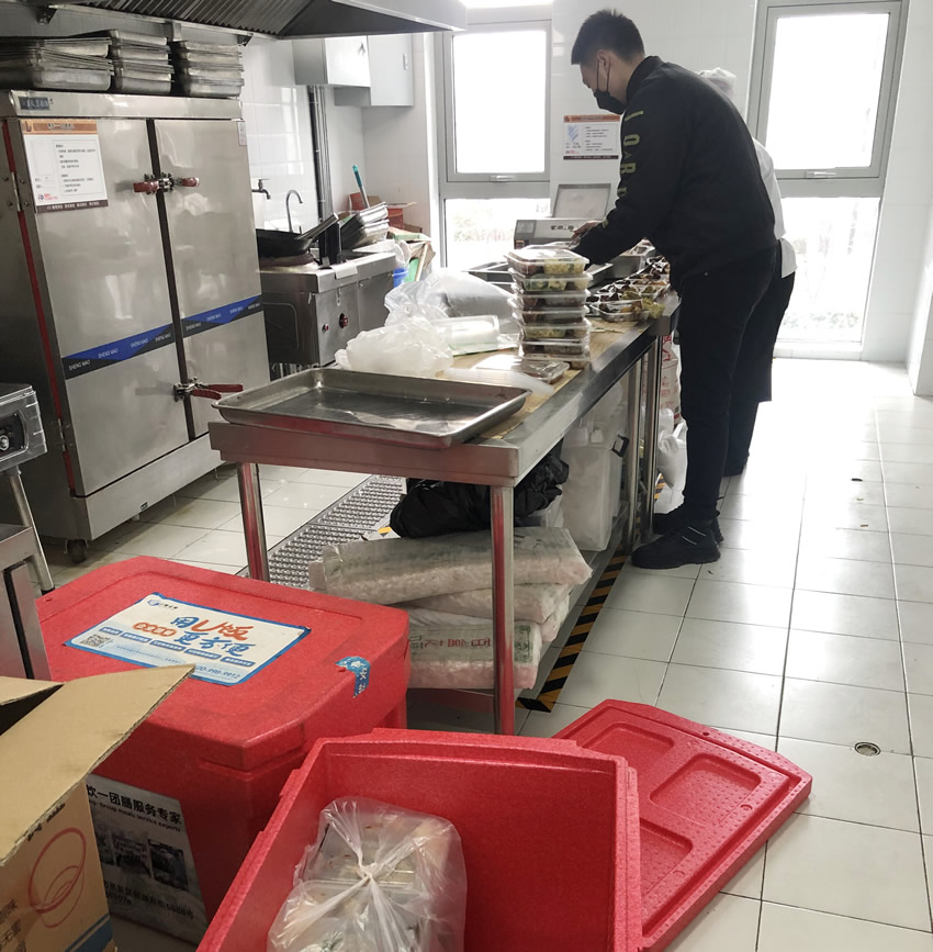 疫情突襲,堂食受到極大影響,外送成為了餐飲項目的主流趨勢,再加上超市的園區生活必需品配送服務,他們三人不得不在人員緊缺的情況下全員化身店小二,每天奔跑在園區送貨的路上。于洋,負責整個項目的線上維護及二樓餐飲項目所有事務,同時還擔當著超市收銀員替補,是外送店小二中的主力擔當。堂食有所限制后,園區很多單位改成了訂餐送貨上門。無論是面對線上群里信息不斷、私聊信息滿屏的情況,還是線下送貨頻繁的局面,他都能井然有序地一一解決。這真是讓我對他刮目相看。一個二十多歲的大學生,家里的獨生子,白白凈凈、高挑帥氣,宛若一個玩世不恭的“公子哥”,以為徒有其表,沒想到干起活來這么利落,任勞任怨,毫無怨言,臉上永遠洋溢著天真的笑容。