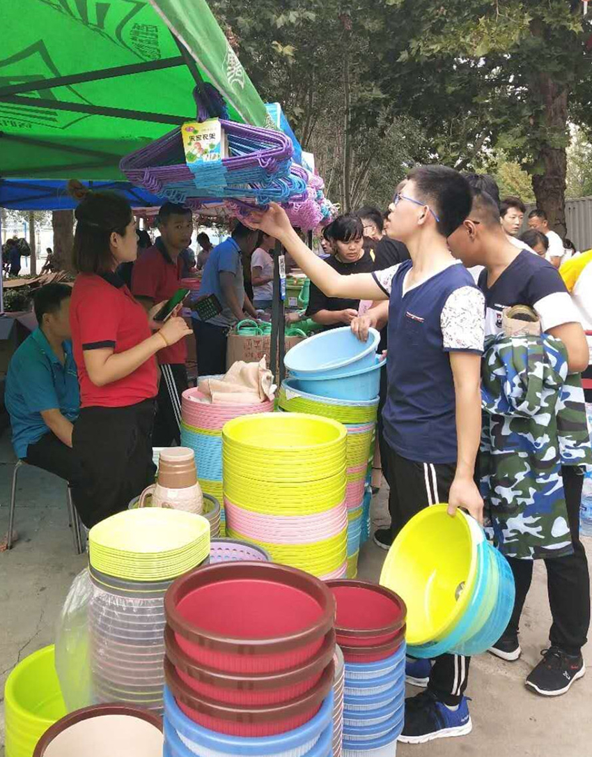 “這兩種暖瓶內(nèi)膽是一樣的,但是外殼的材質(zhì)不同,價(jià)格高的這一款外殼設(shè)計(jì)更個(gè)性一些。您放心,我們超市提供七天退換服務(wù),您可以先試用一下。”……這位耐心又專業(yè)地給新生和家長介紹商品的員工是信息學(xué)院店戴紅玉。早上六點(diǎn)多她就來到了店里,忙著收銀、搭建外場、懸掛促銷信息牌,之后又跑進(jìn)跑出,跟其他部門幫忙的同事介紹商品、價(jià)格、收款注意事項(xiàng)等。到了中午吃飯時(shí)間,顧客逐漸減少了一些,戴紅玉總算稍稍松了一口氣,聊起了開學(xué)季的情況。“這是俺店第一次搭建外場,沒想到外場的銷售還挺好,之前的辛苦沒白費(fèi)。”